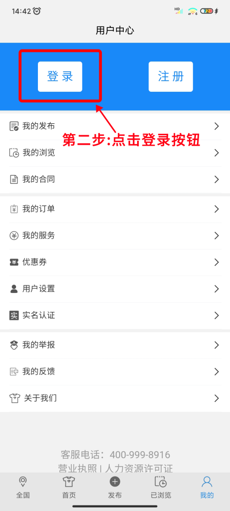 1.点击 “我的” ,再点击 “登录” 进入